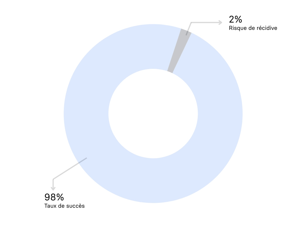 Taux de réussite | 98 % (2 % de risque de récidive) |