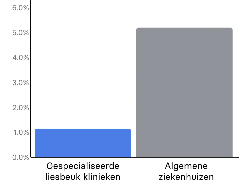 Succespercentage voor klinieken gespecialiseerd in operaties zonder netjes, zoals BioHernia & Shouldice